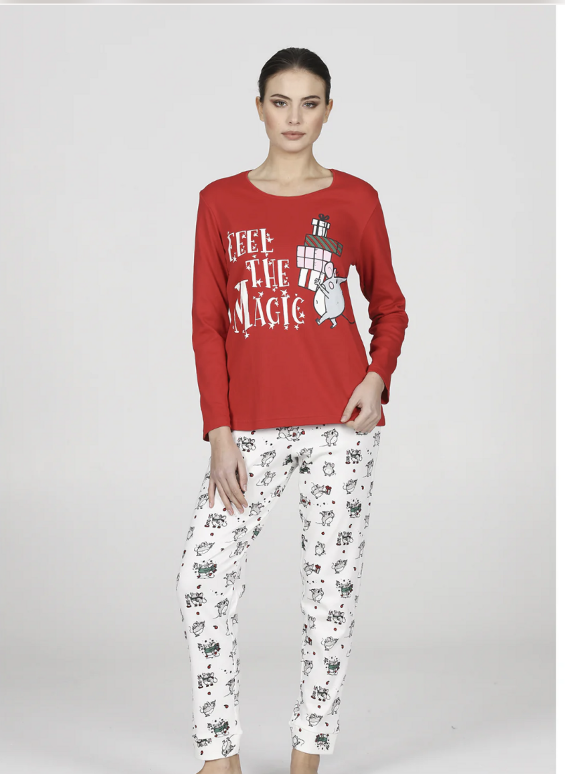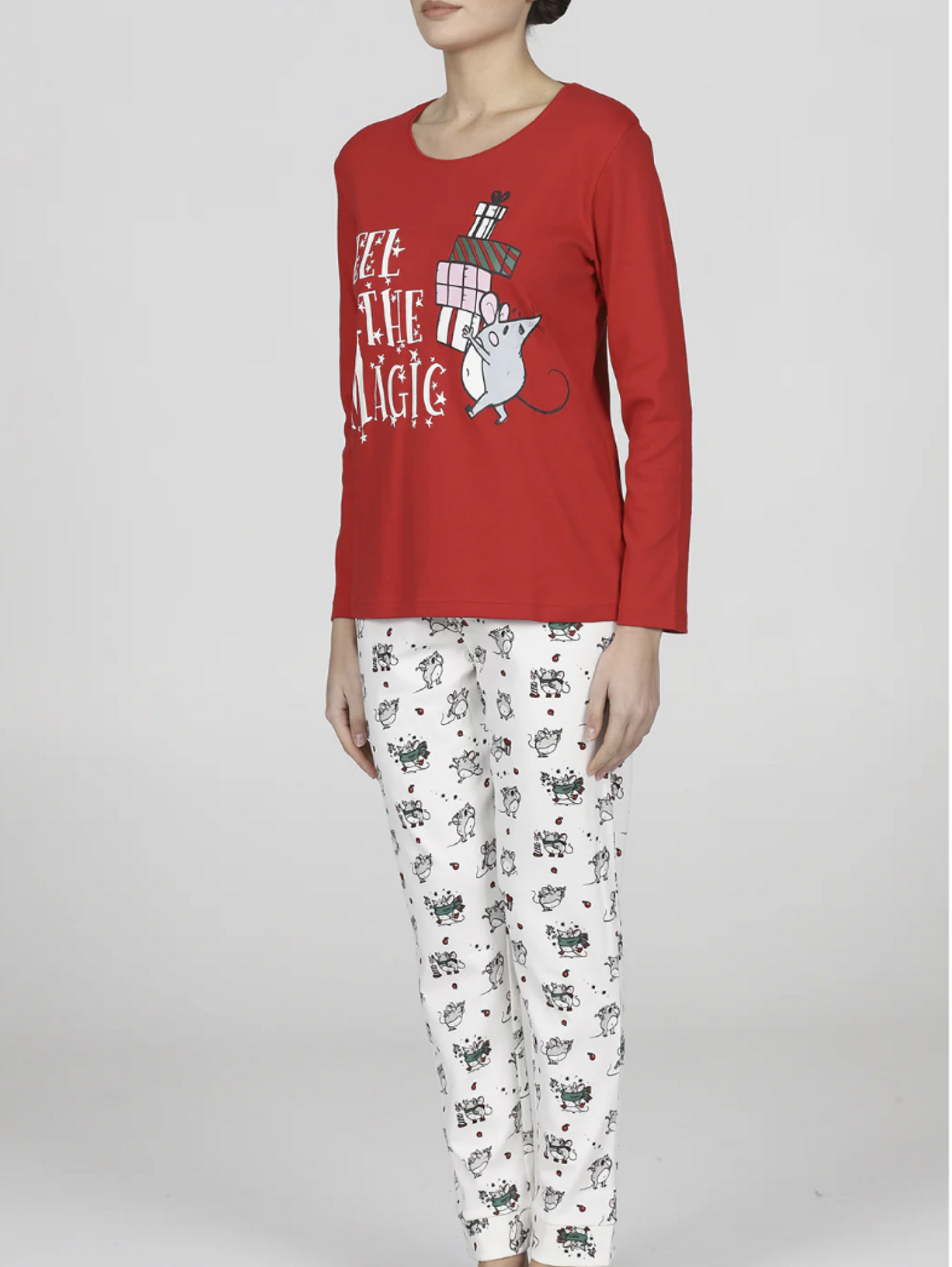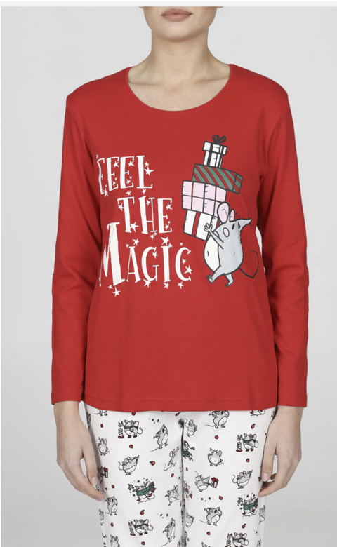 Questo pigiama donna è incredibilmente versatile. Indossalo per garantirti un sonno ristoratore e confortevole durante le notti più fredde. È perfetto anche come abbigliamento da casa per i tuoi momenti di relax sul divano, con una tazza di cioccolata calda e il tuo film di Natale preferito. Grazie al suo design festivo, è il capo ideale da indossare la mattina di Natale per scartare i regali in famiglia, creando ricordi e foto indimenticabili. Abbinalo a delle calde pantofole per il massimo del comfort.
