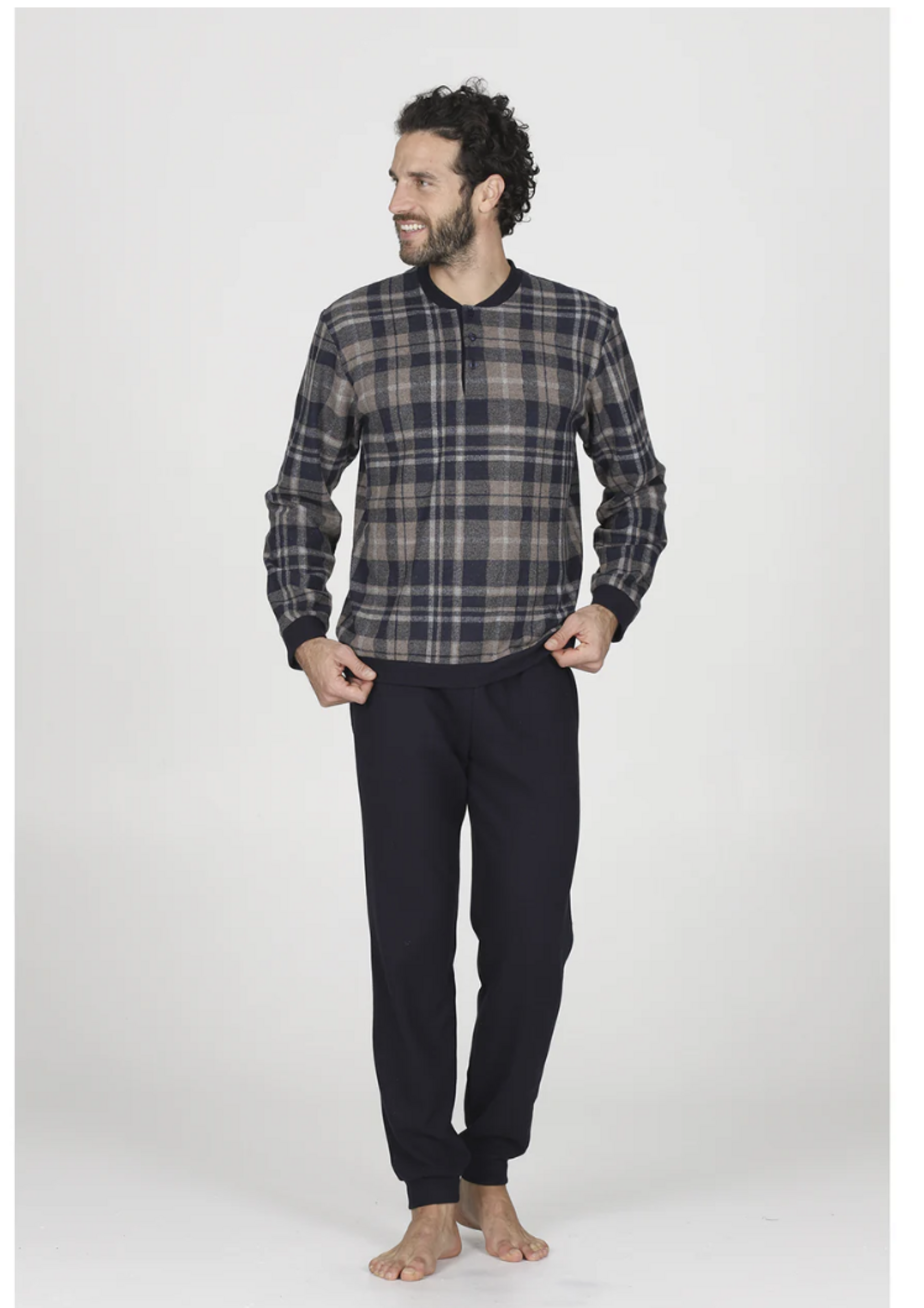 Sei pronto a trasformare le tue serate invernali in un'esperienza di puro comfort e stile? Immagina di indossare il nostro pigiama uomo invernale Julipet, un capolavoro di morbidezza e design. Realizzato in pregiato jacquard, questo pigiama scozzese uomo ti avvolgerà in un caldo abbraccio, perfetto per le notti più fredde. Il modello serafino con la sua classica abbottonatura parziale unisce praticità e un tocco di raffinatezza, rendendolo il pigiama caldo uomo ideale per chi non rinuncia all'eleganza nemmeno nel relax domestico. La fantasia scozzese bordeaux della maglia, abbinata al pantalone in tinta unita, crea un completo armonioso e di classe. Scegli la qualità e il comfort di un vero pigiama Julipet, il tuo alleato perfetto per un riposo rigenerante.
